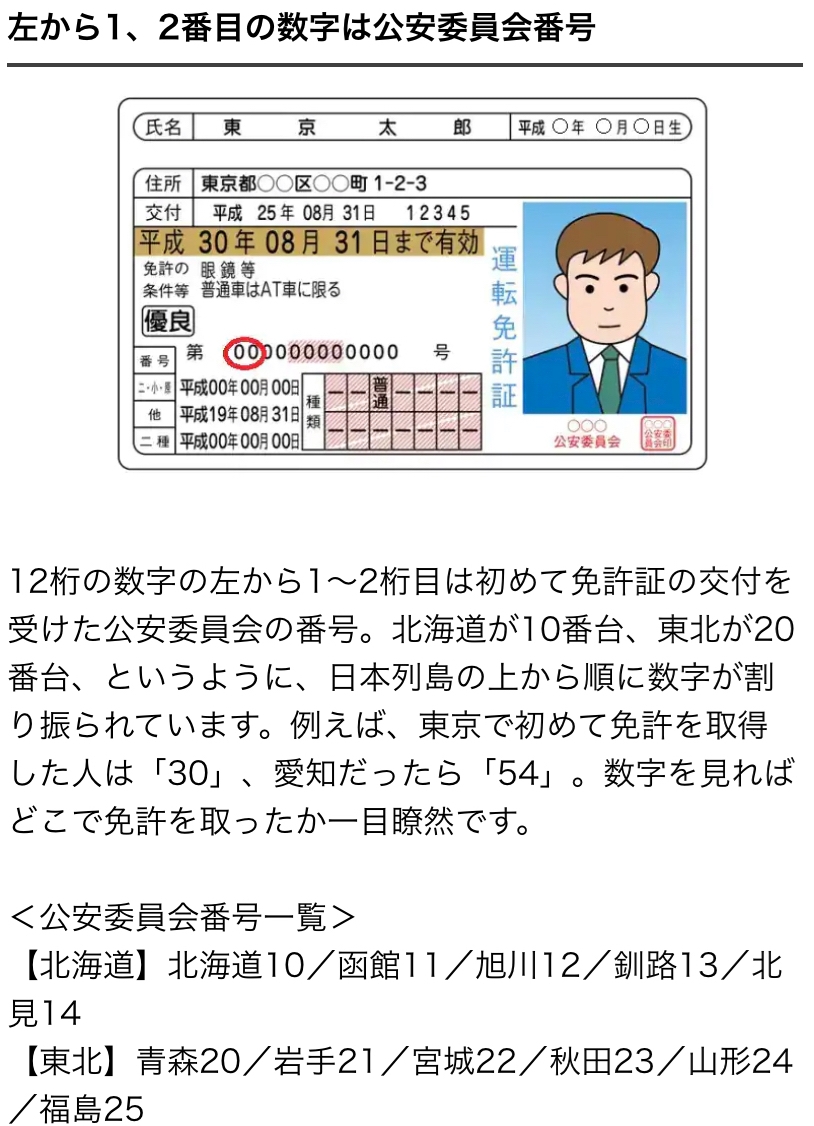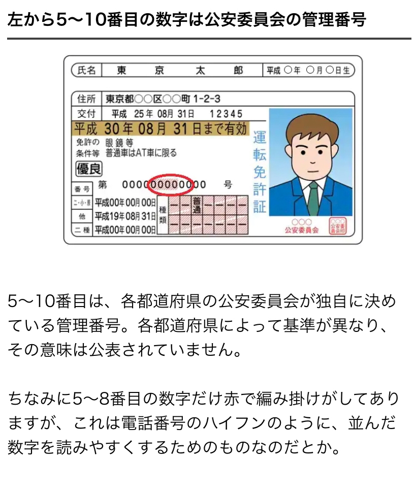 運転免許証の番号ってどんな意味って
