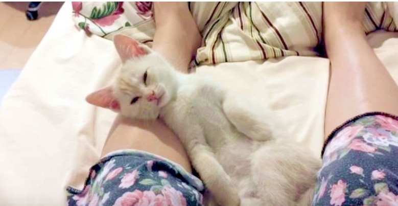 ]ママの足元でウトウトする仔猫ちゃん