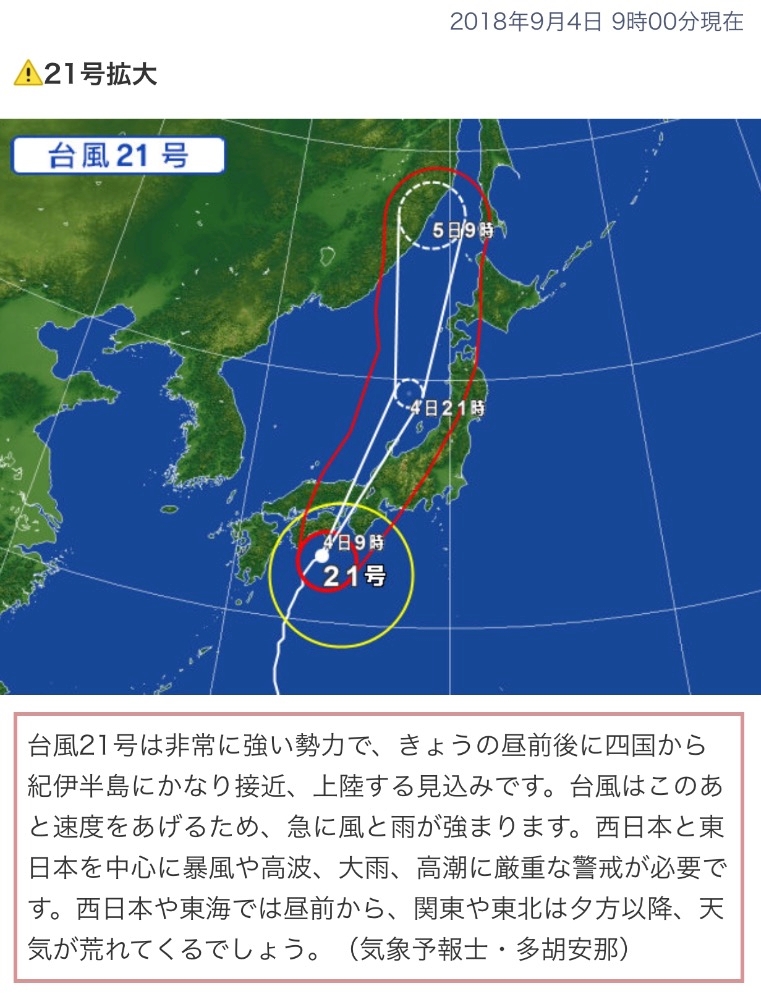 台風今日のお昼頃が一番