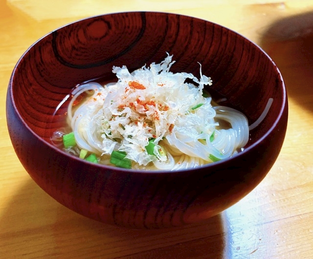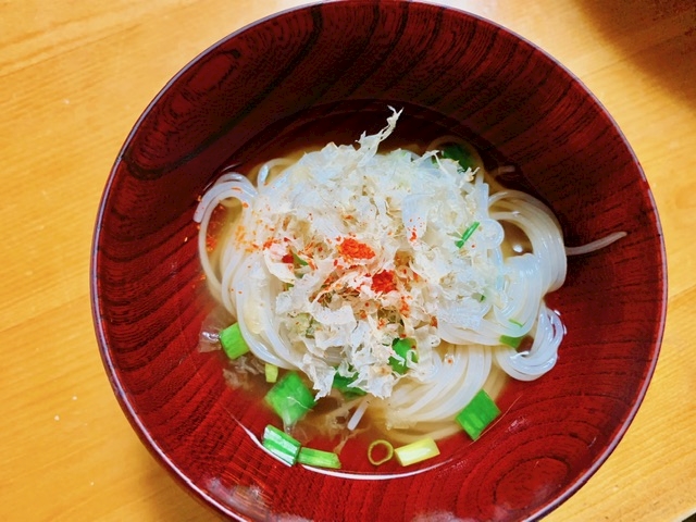 早速米粉麺で煮麺を作り、