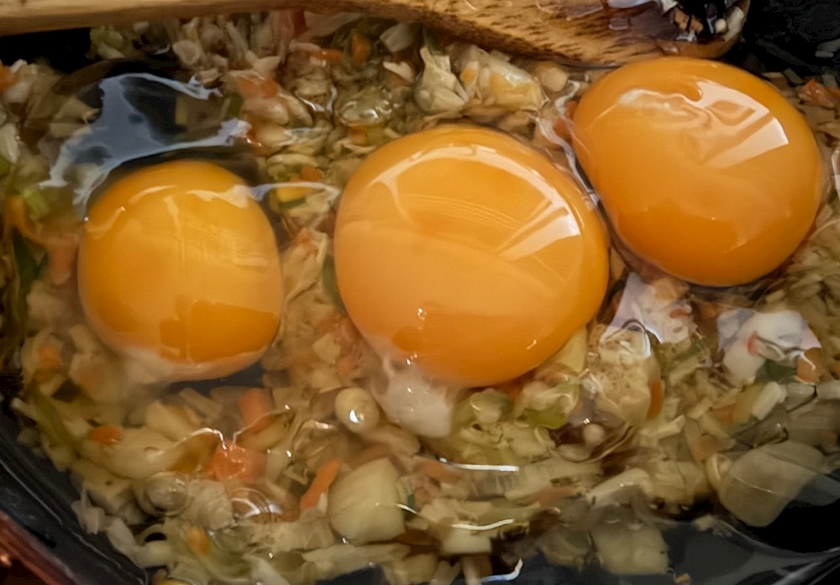 新しい卵2個を割り入れたら