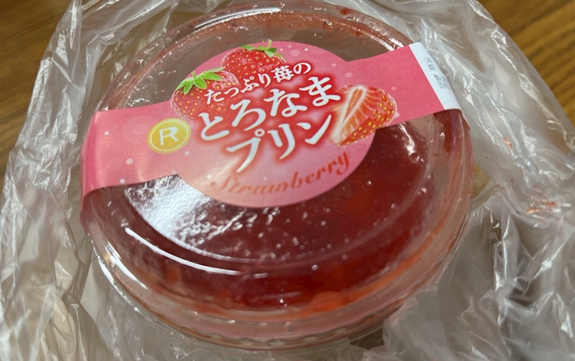 プリンの上にイチゴジャムぽい