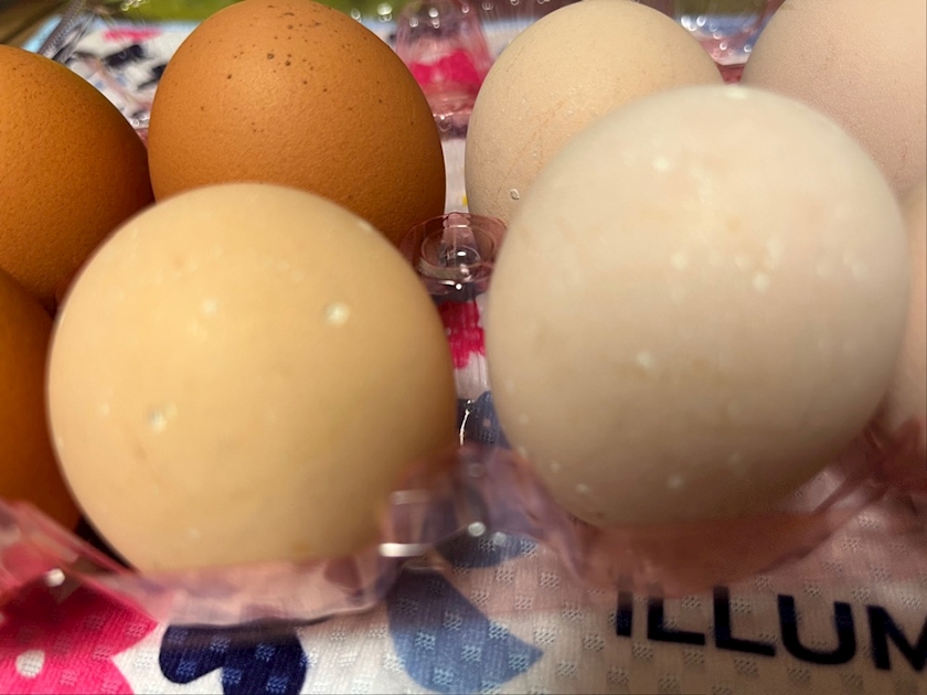 左3個がスーパーで買ってきた赤卵🥚