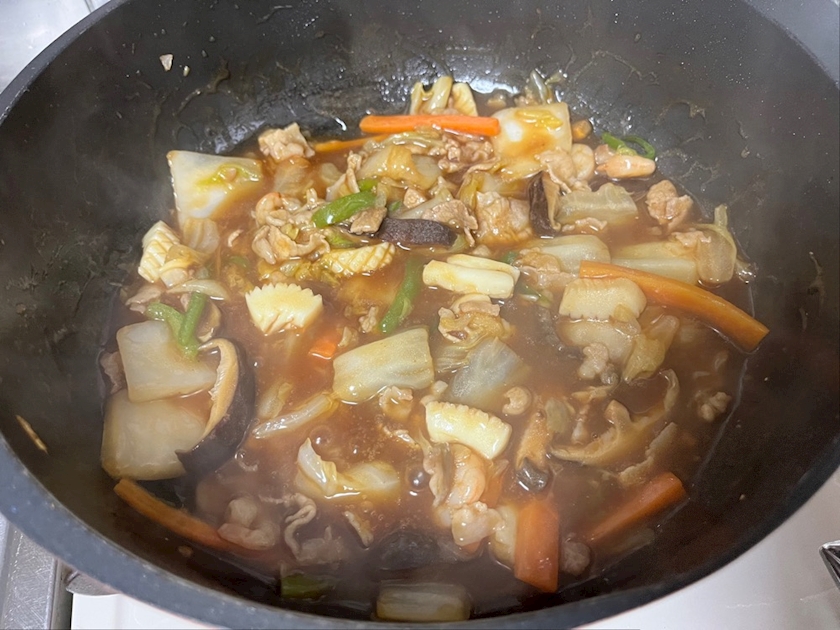 ご飯に五目あんかけのせて🍚