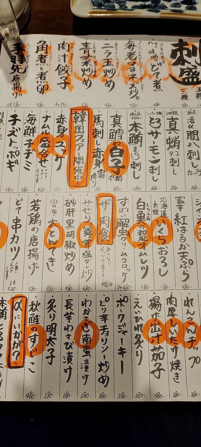 そして途中このメニュー表の