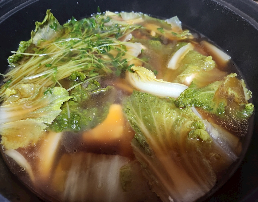 地味に再生させた豆苗達も入れて