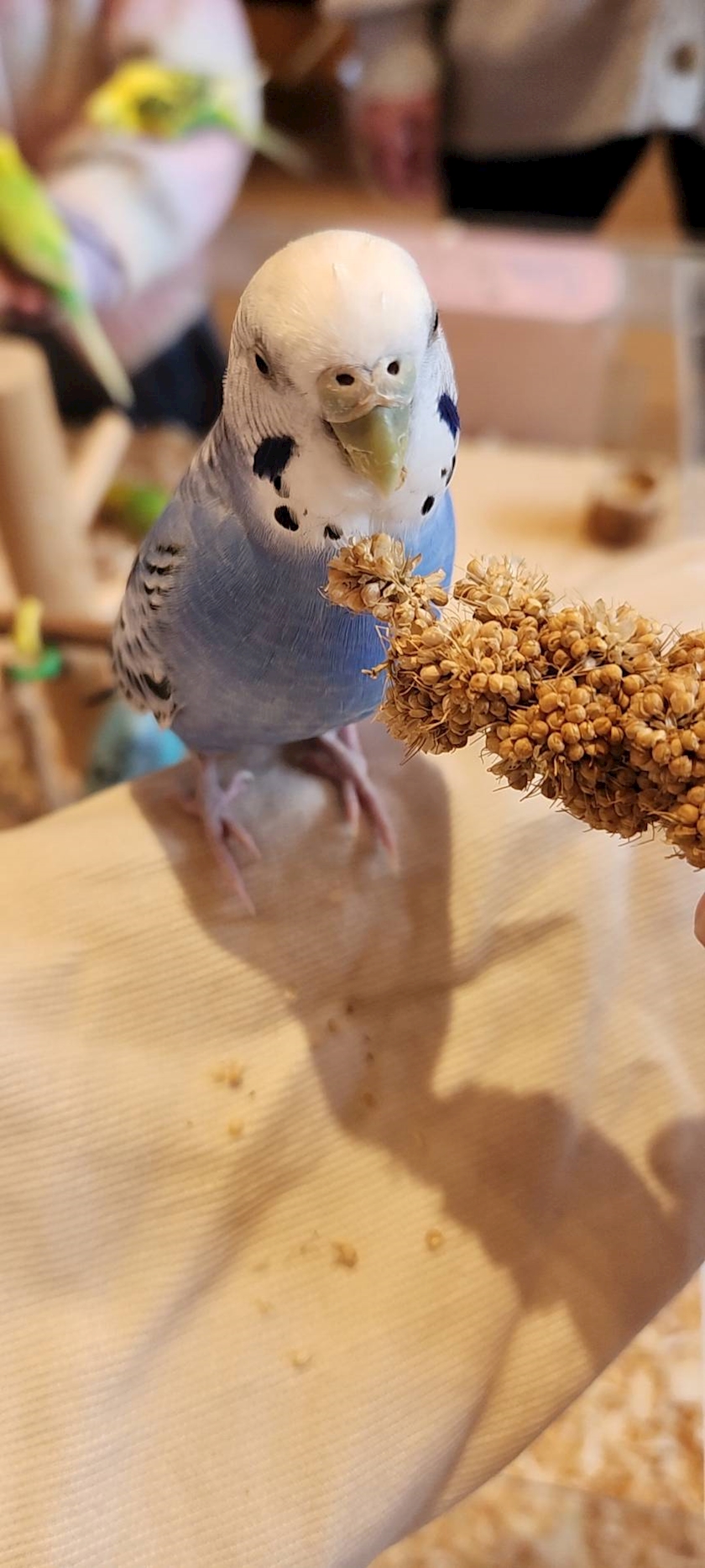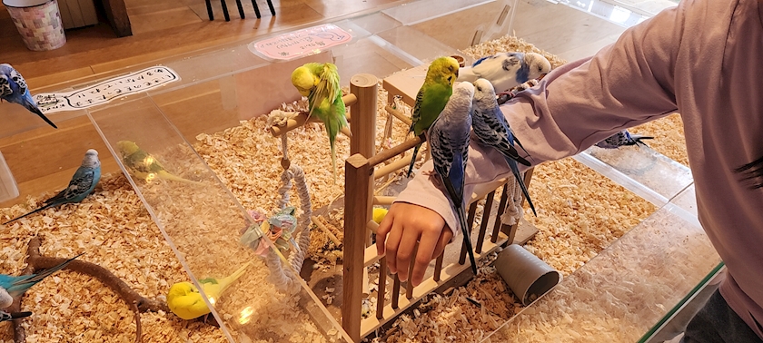 腕に乗せたり餌あげたりして
