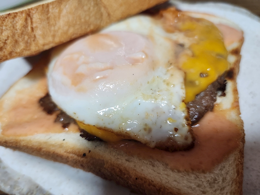 目玉焼きのせて挟んだら