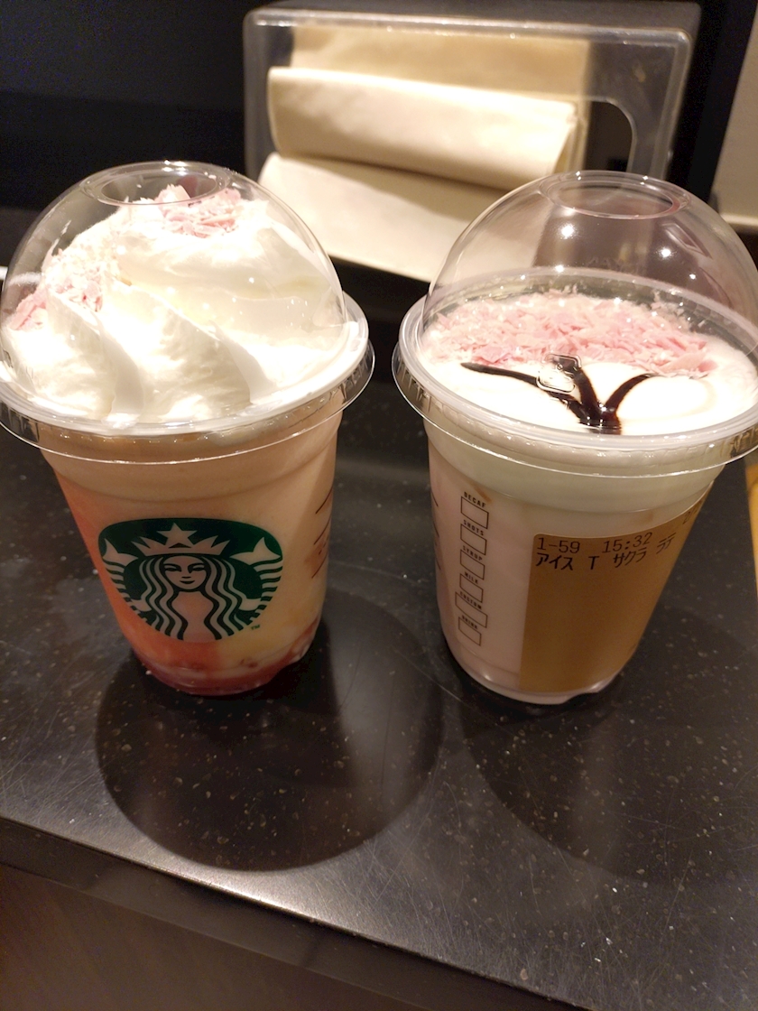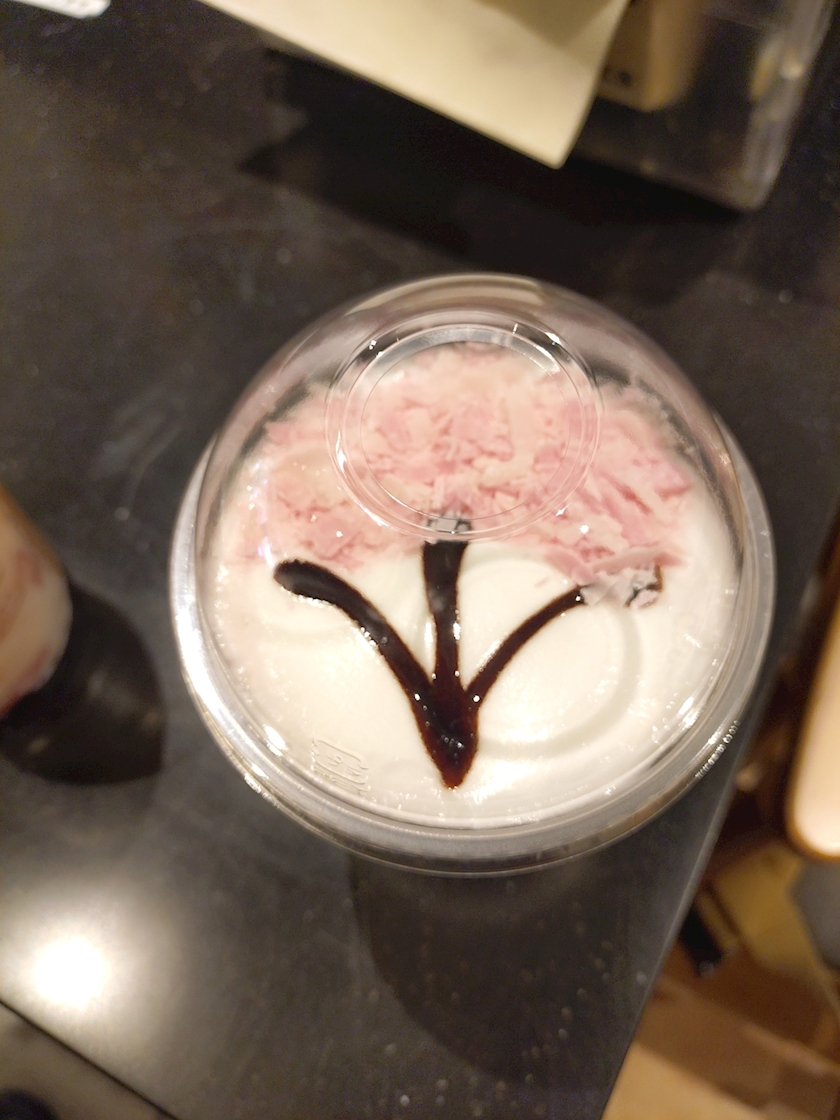 友人は白桃&桜?のフラぺ、ワイは桜ラテなのだ🌸