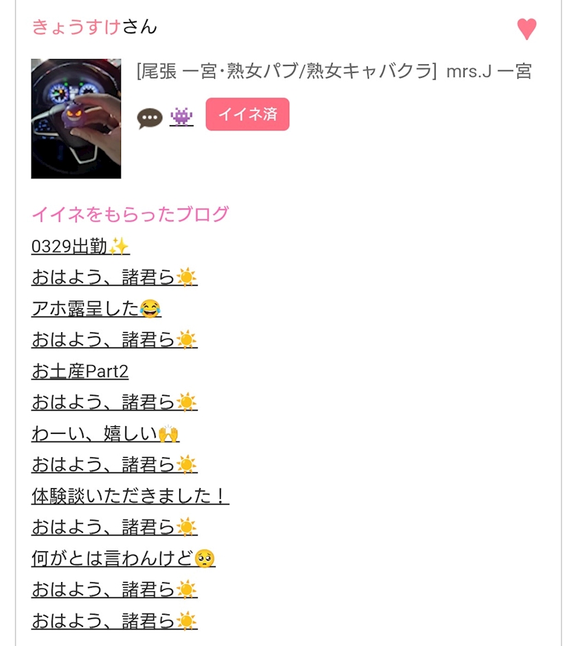 J一宮のスタッフ、きょうちゃんのイイネ履歴😂
