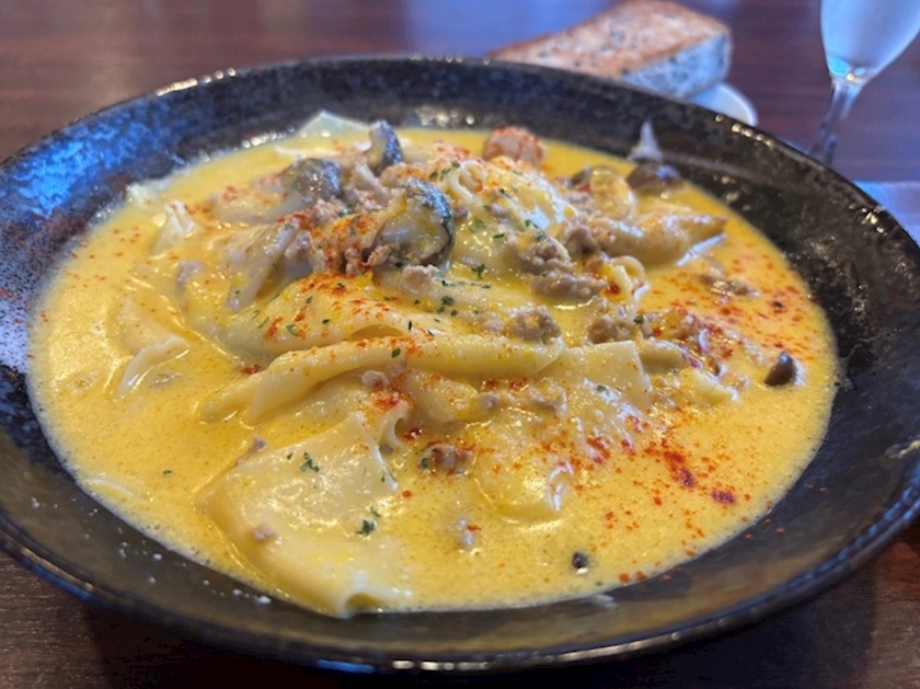 かぼちゃの甘みが平たい麺に絡んで美味しかったです🎃🧡