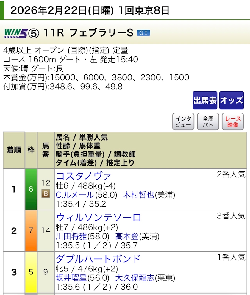 🐴フェブラリーステークス...
