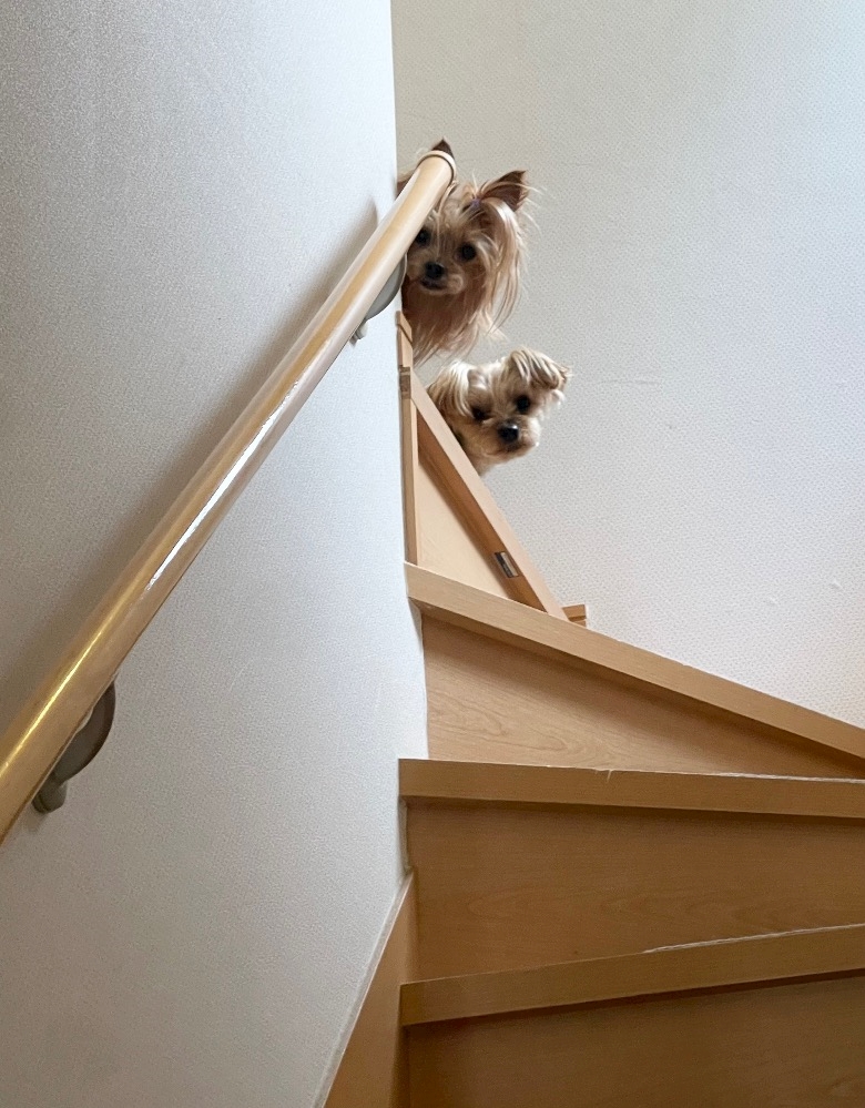 階段の上から見てくるの笑