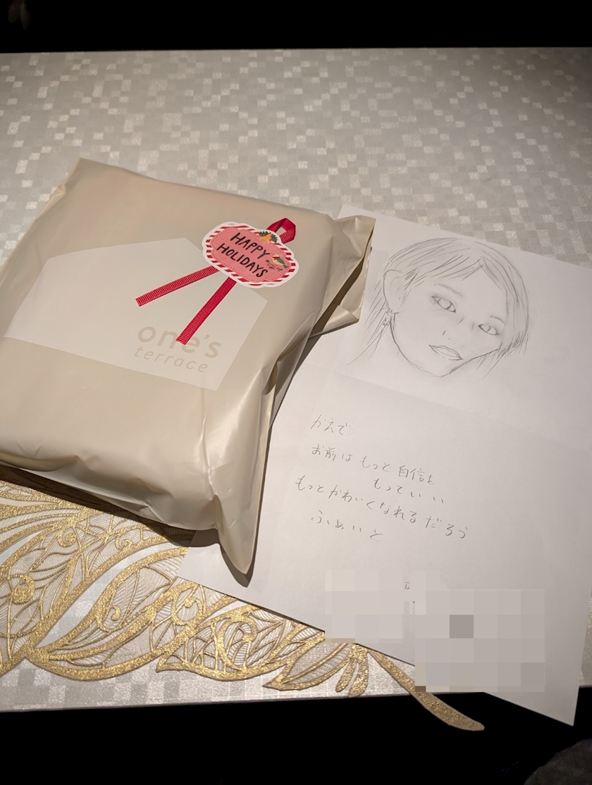 お客様から、似顔絵とお菓子いただきました😆