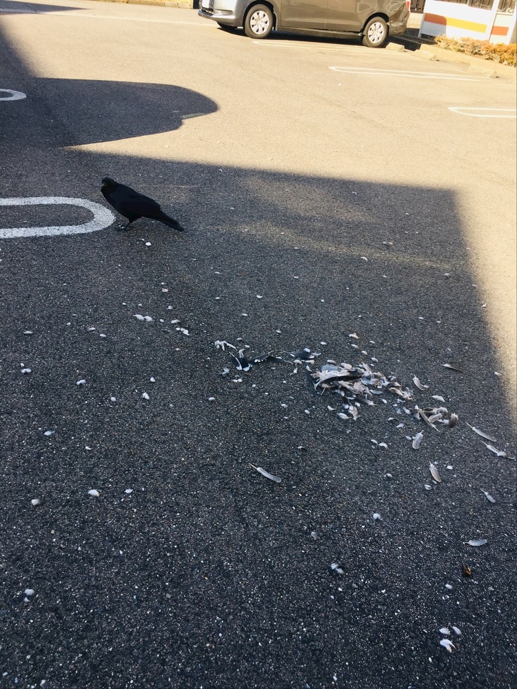 隣の駐車場の人のところに鳥死んでて、カラスが食べてた💦💦💦