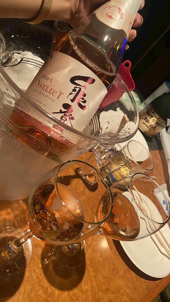 ラベルは和風なのにロゼのスパークリングワイン🍷と