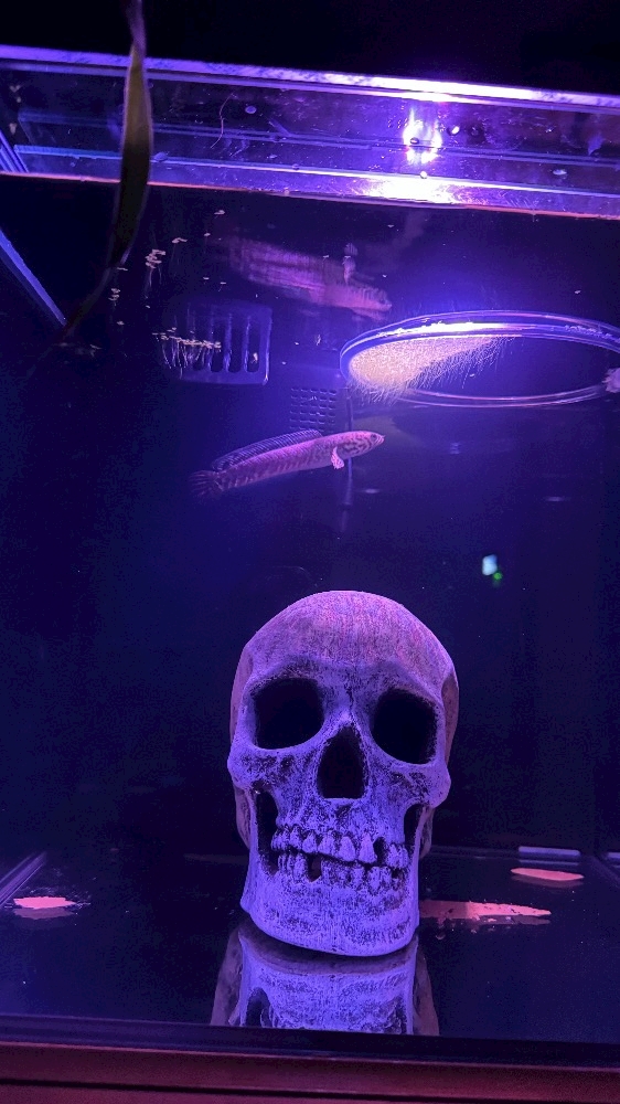 飼ってたスネークヘッド🐟が水槽からフタを上手く隙間を作って飛び出しちゃってて…