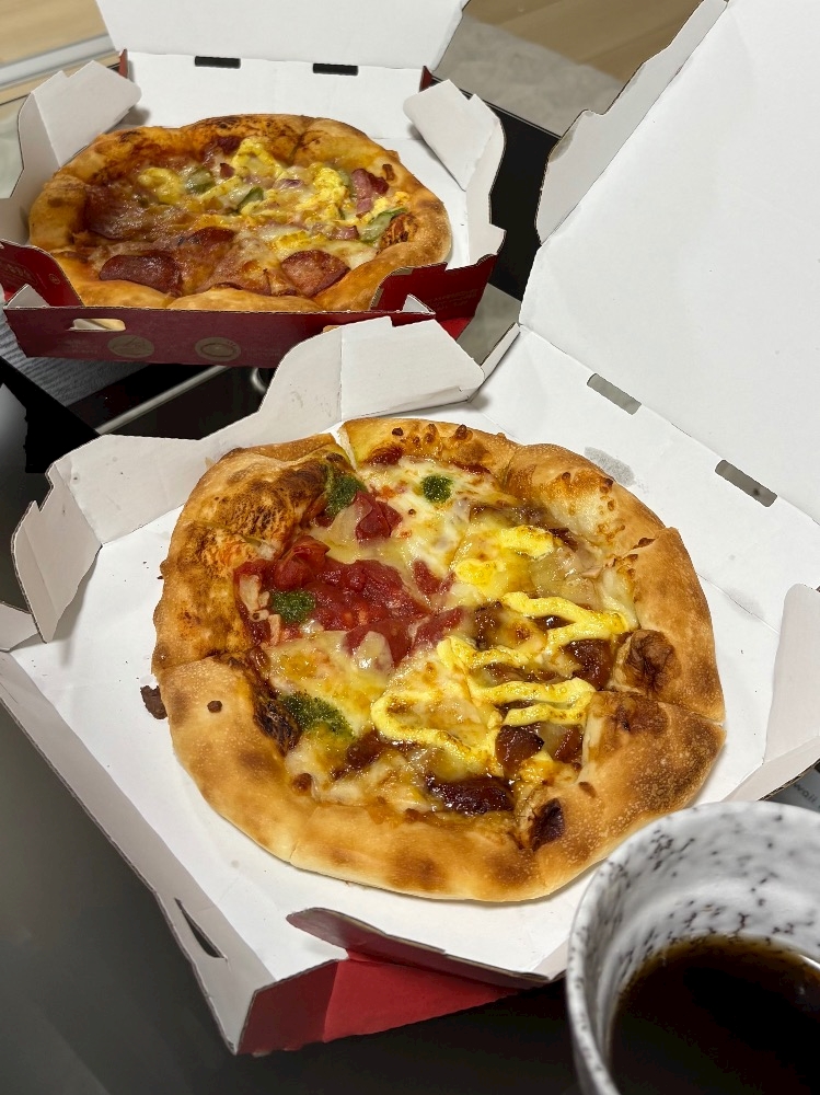 お昼はピザたべました