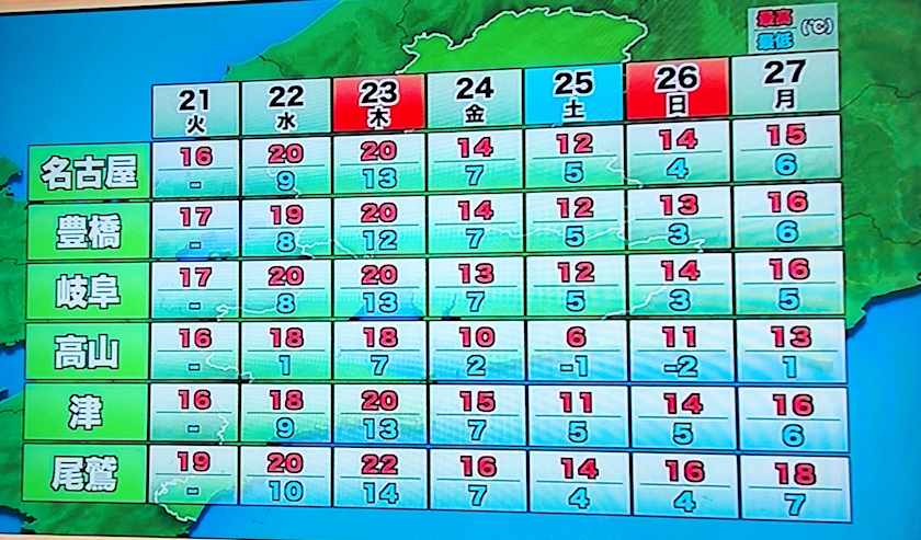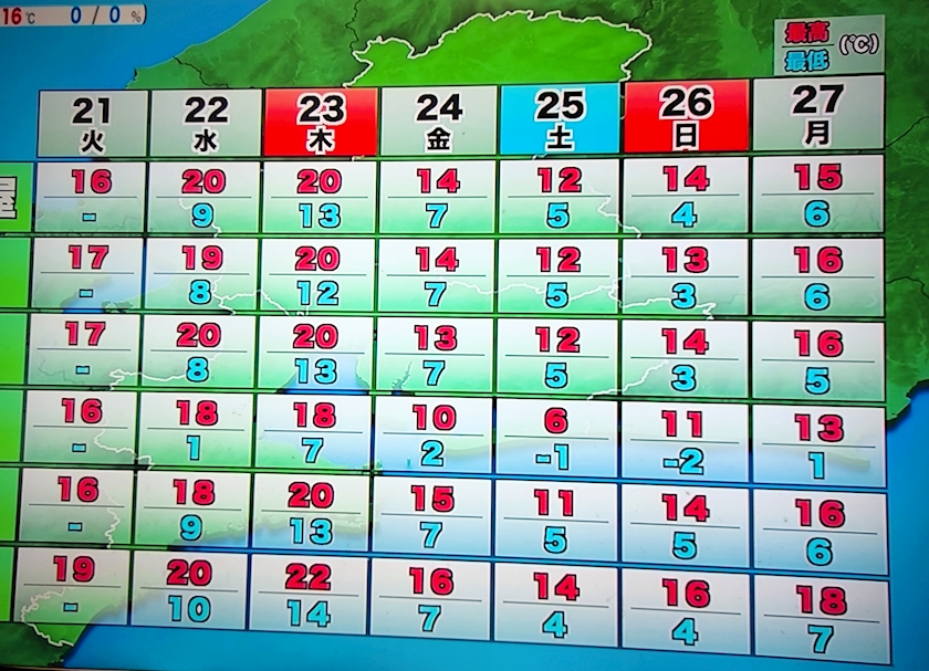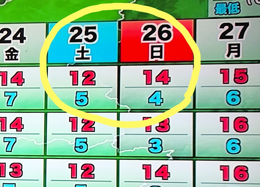 最低気温5度を