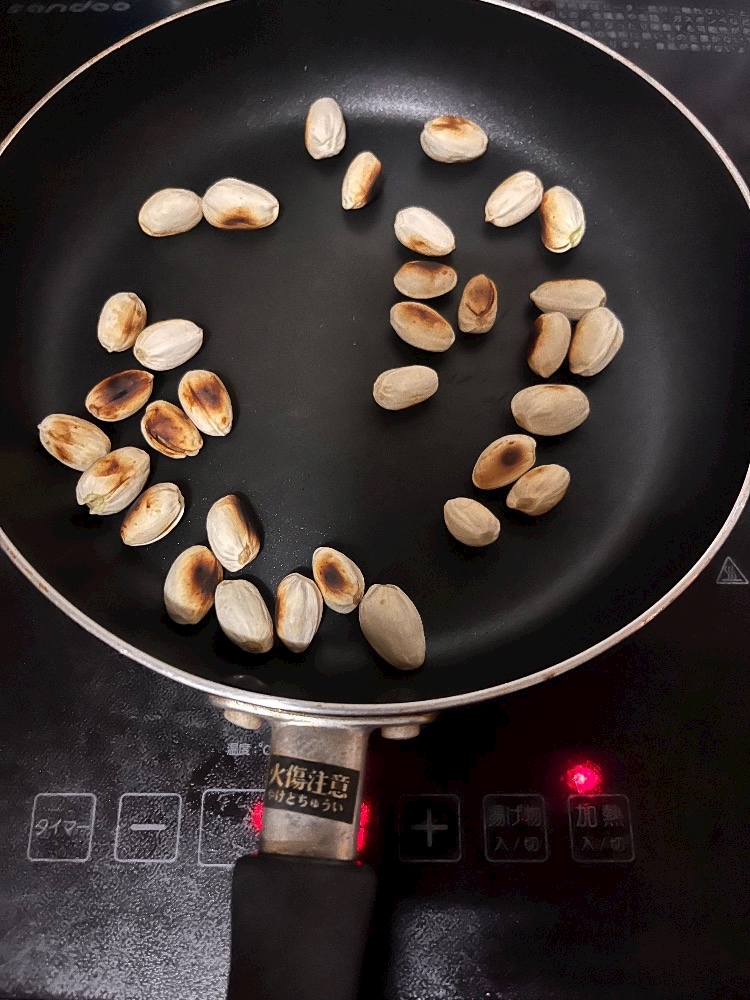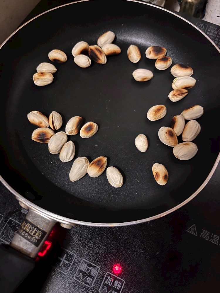 もともと少し割れてるのも入ってたけど、まったく割れてないやつはフライパンで煎っで変わらずそのまんま🥹