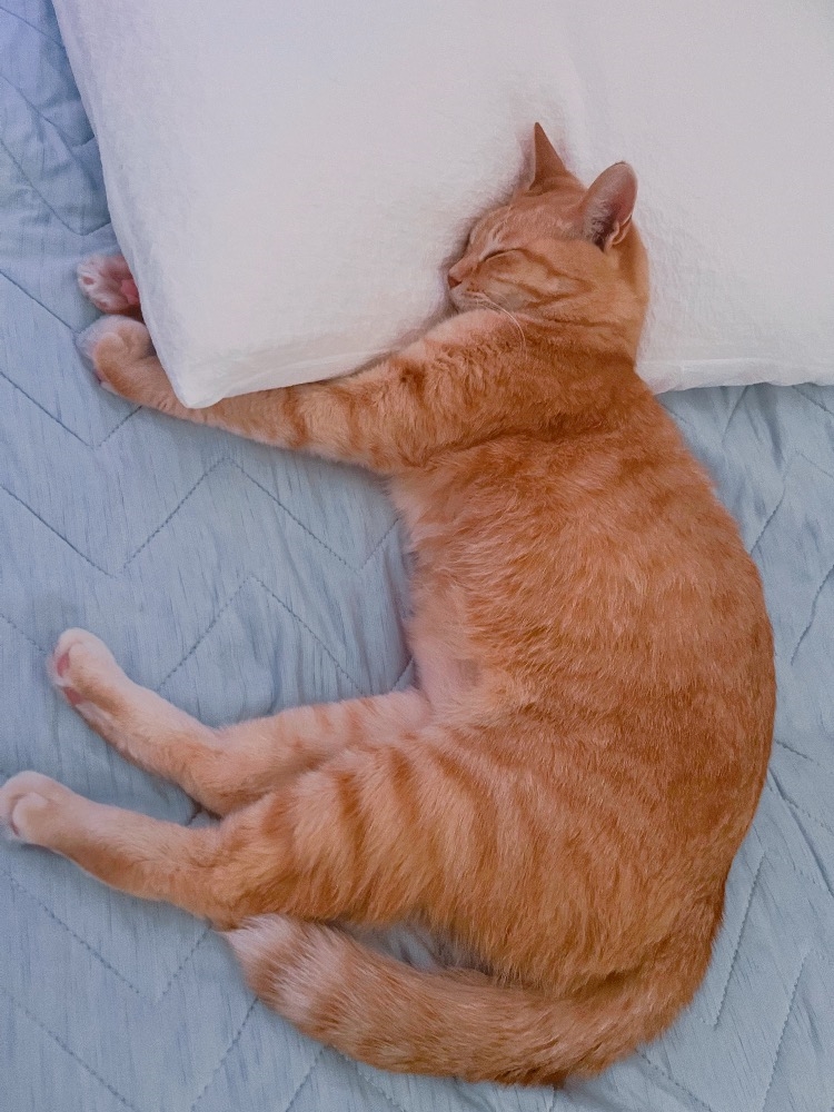 今朝起きたら隣で、ちゃっかり枕まで使って寝てた子🐈