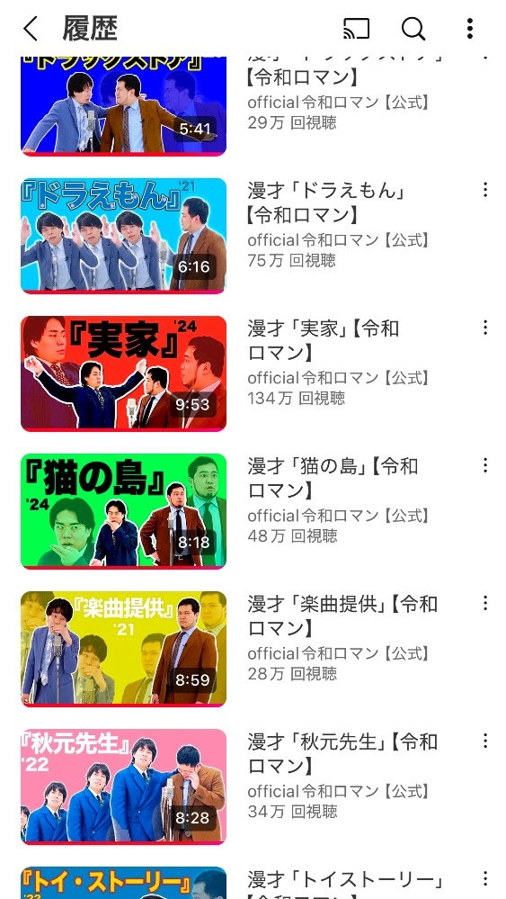 私の最近のYouTubeの履歴なんだけど、