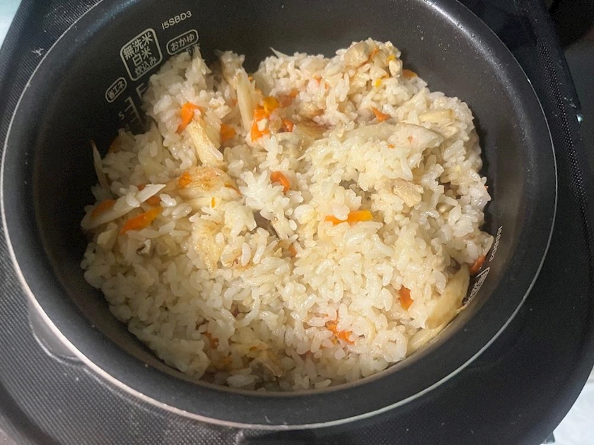 鶏肉、ごぼう、人参の炊き込みご飯
