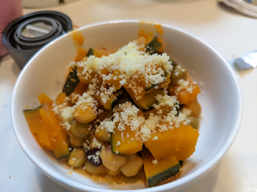 かぼちゃと豆トマトソースで