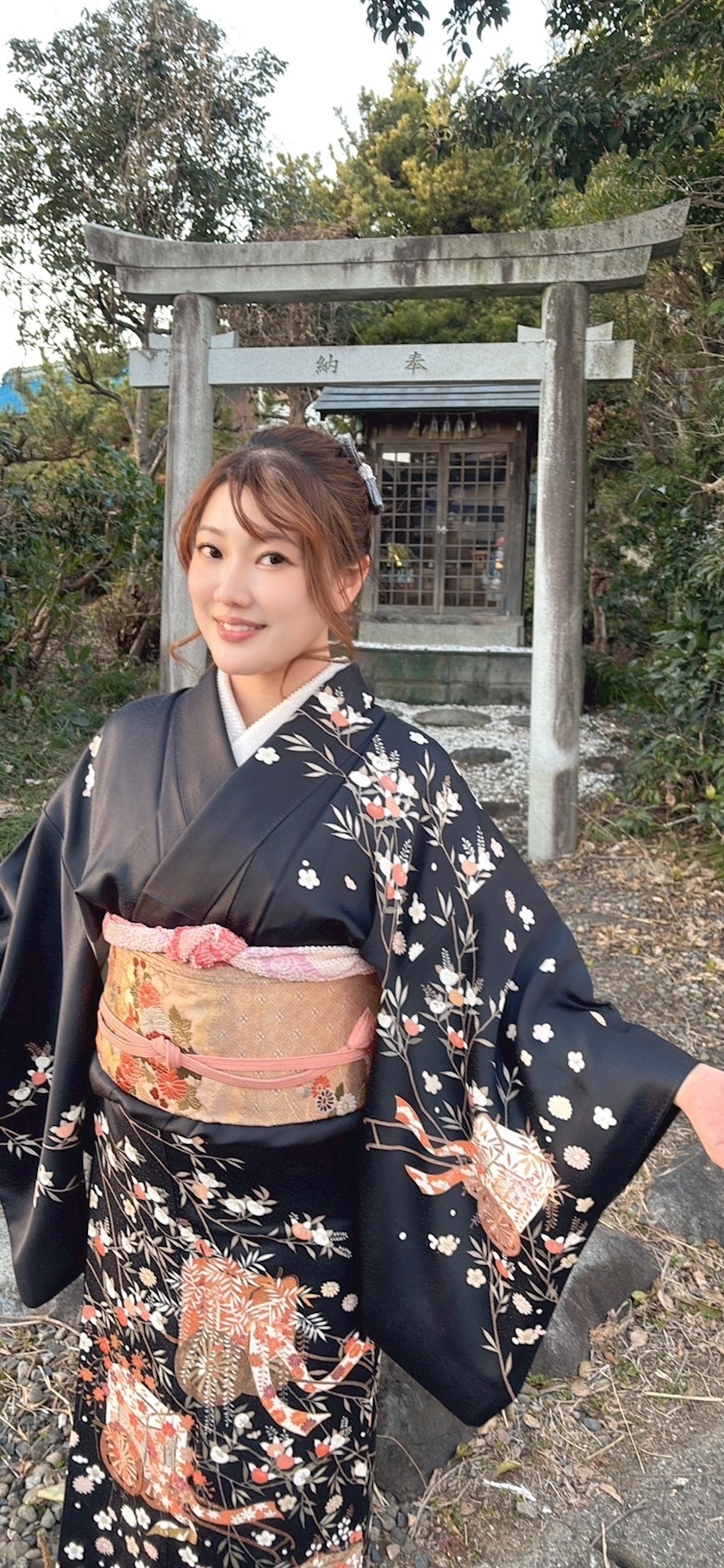お着物は黒で地味かなって
