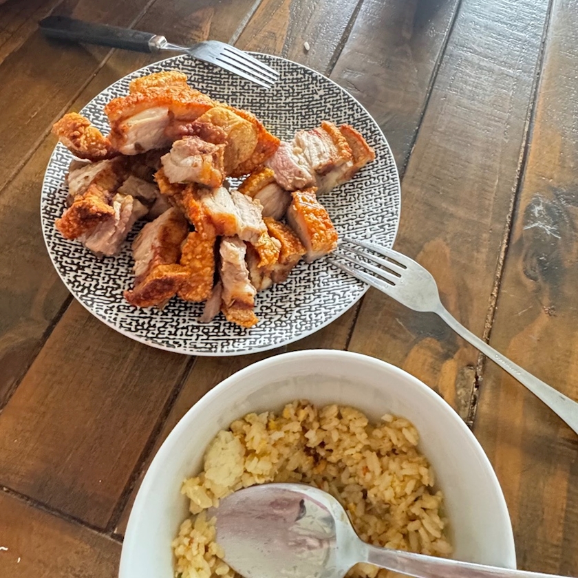 クリスピーポークとチャーハン😂🤍