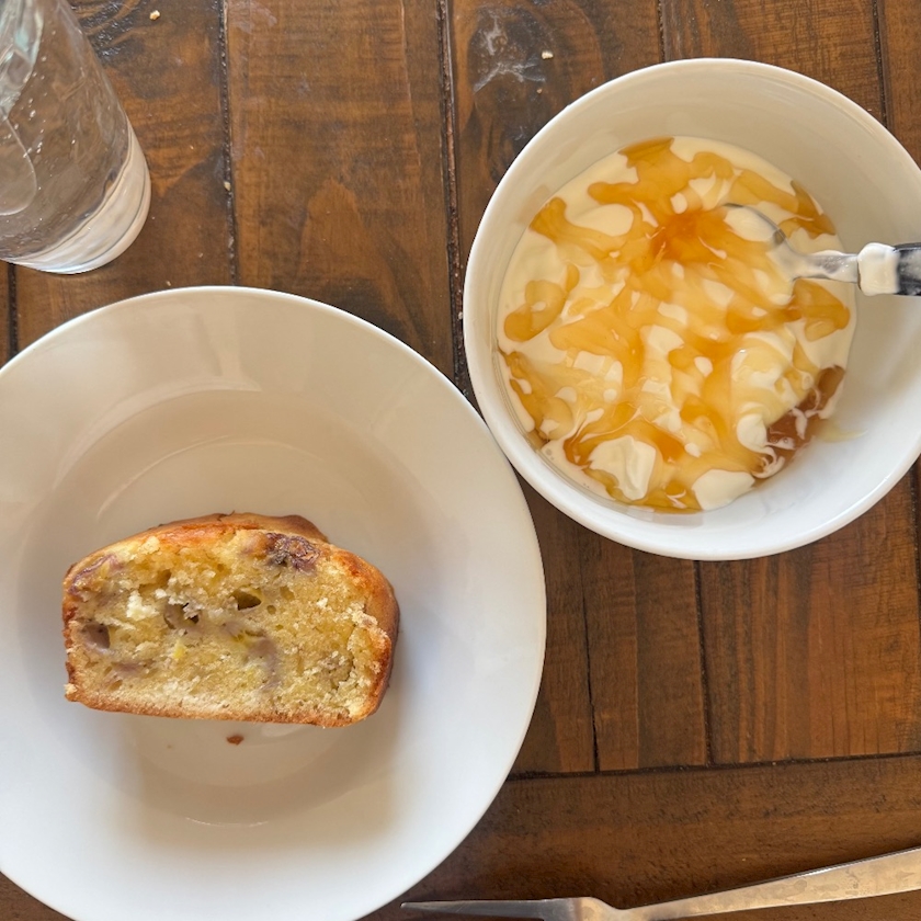 昨日作ったバナナパウンドケーキとヨーグルト🍦