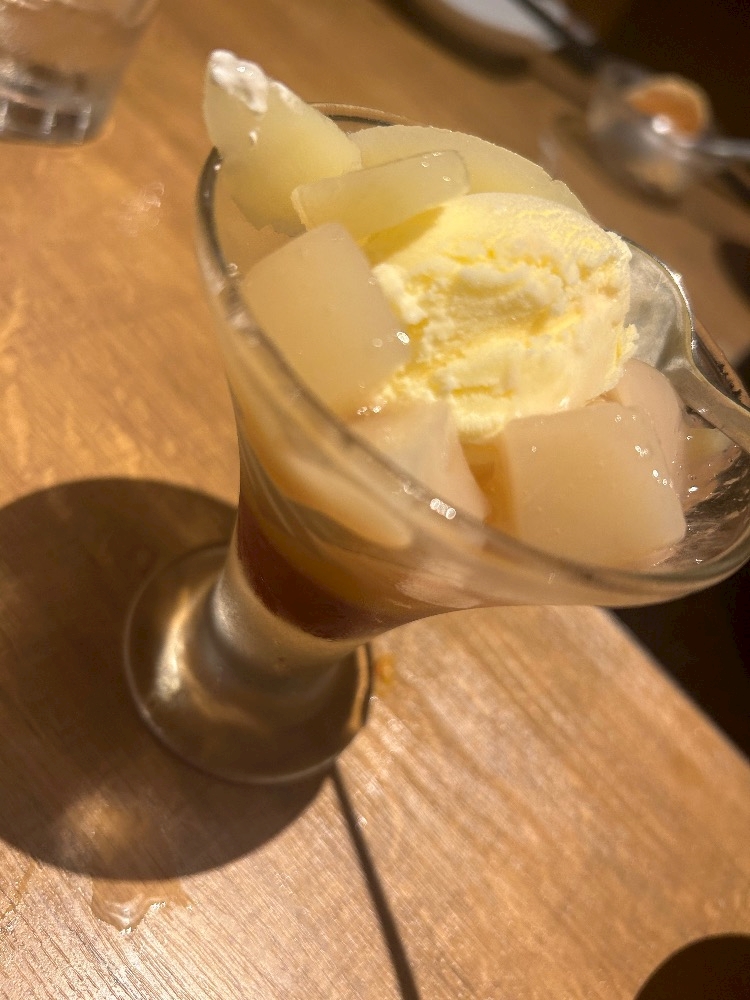 デザートで食べたこの桃のパフェも美味しかったです