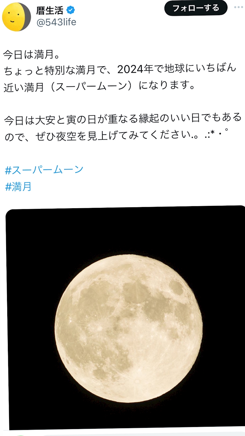 Xで見たのですが、今日はスーパームーンみたいですよ