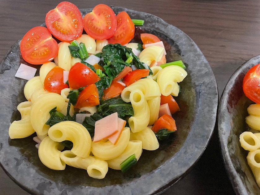 マカロニとほうれん草とトマトに