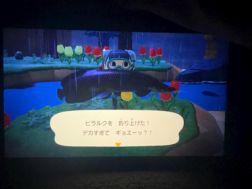 ななの大好きなお魚のピラルク釣れたよ✌️