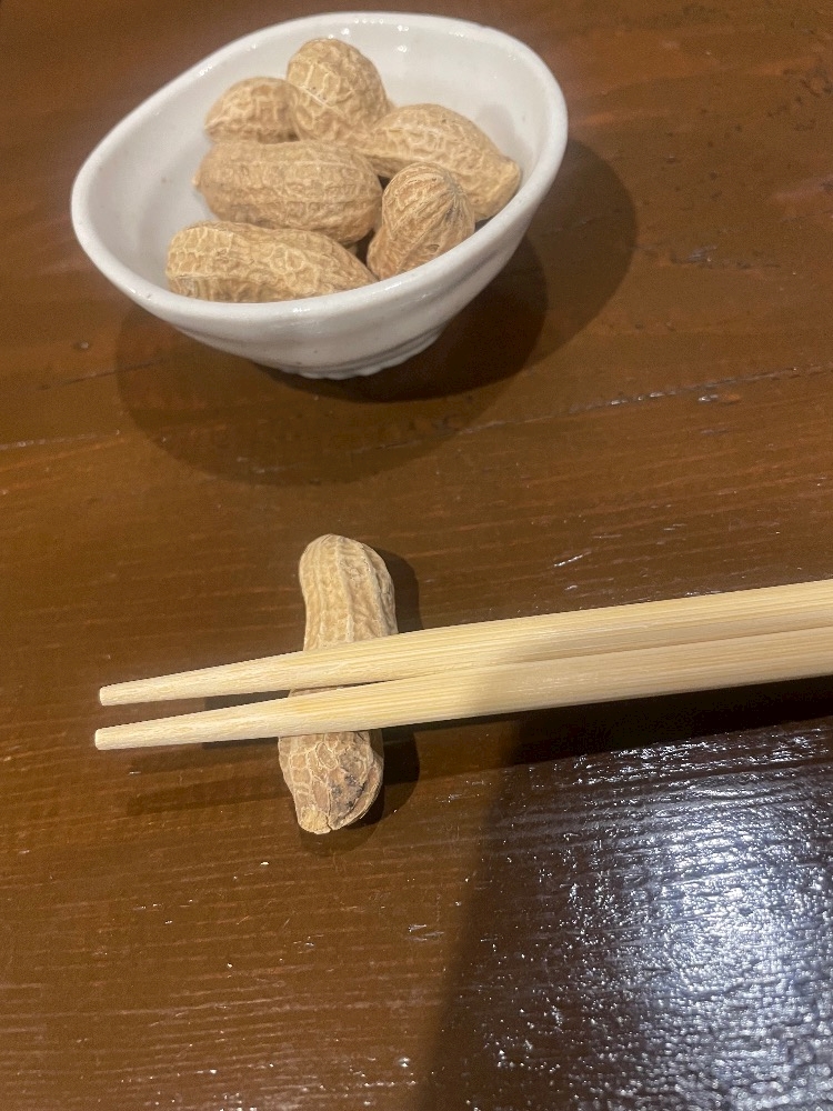 お通しのピーナッツと箸置きのピーナッツ🥜