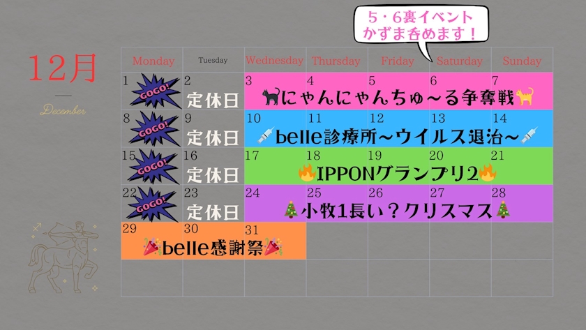 12月のイベントです✊🏻‼️毎週イベント盛りだくさん!?😳 - みさき - girlsbar belle・ベル - 小牧のガールズバー