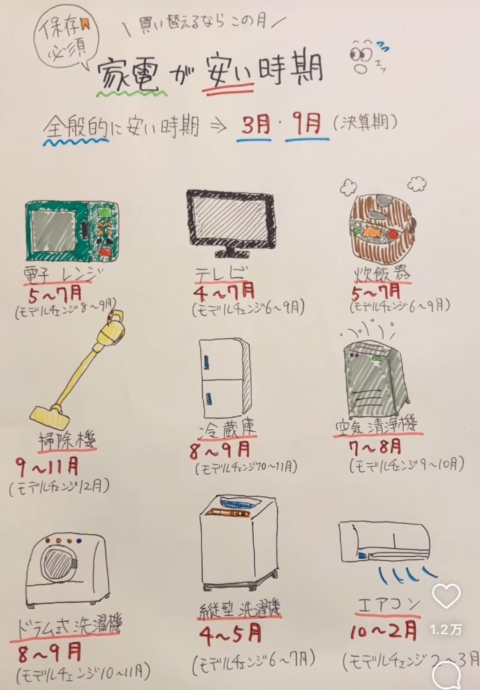 こーの 家電 安くなる時期