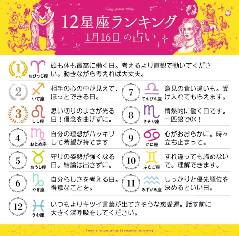 今日の星座占いいきましょう!
