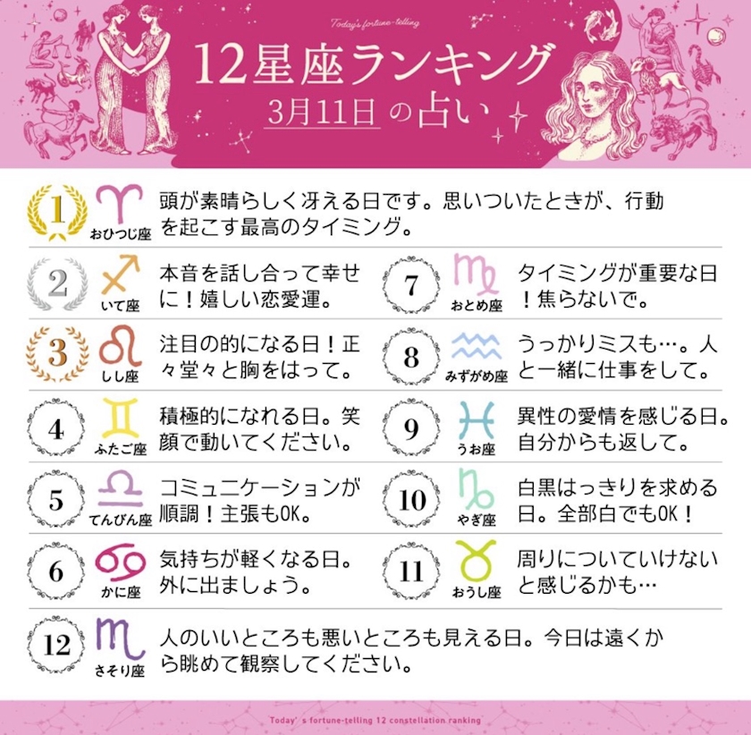 今日の星座占い