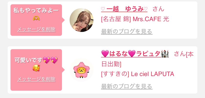 お気に入りの女の子をタップ