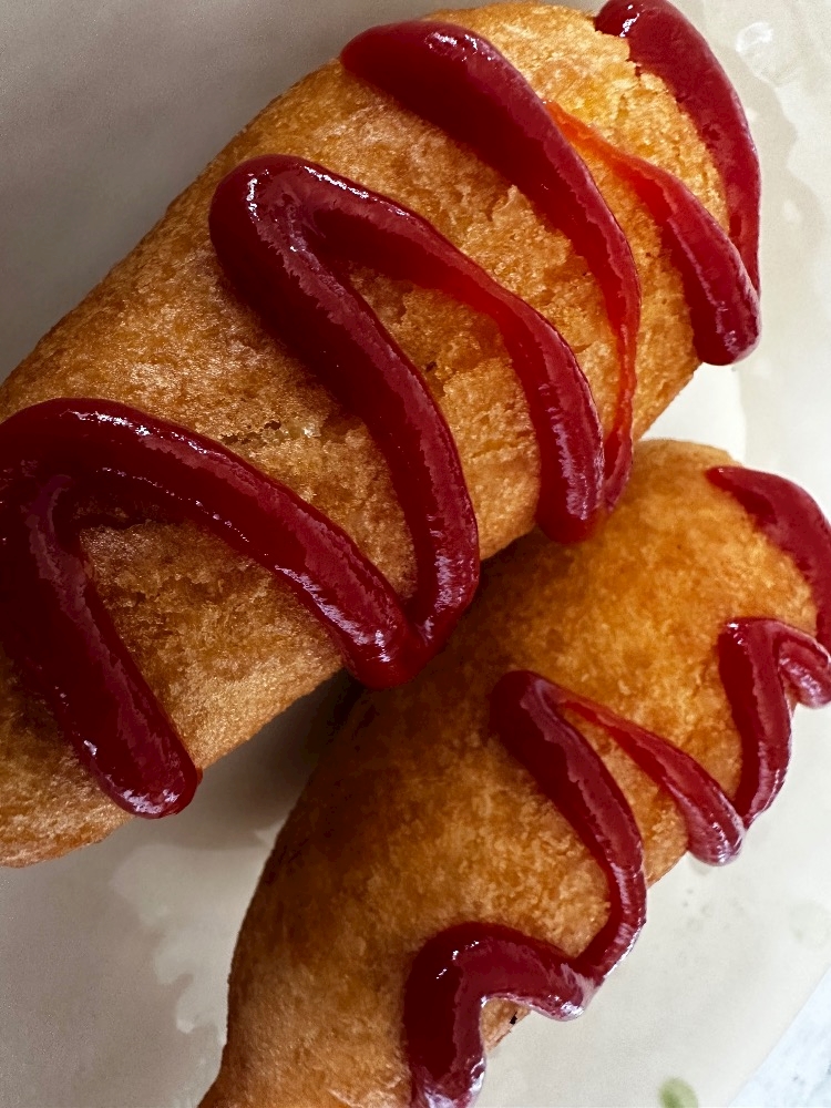 朝 兼 昼ごはんにアメリカンドッグと