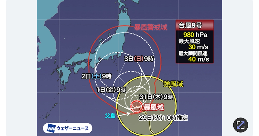 今回台風 範囲でか!!🥺