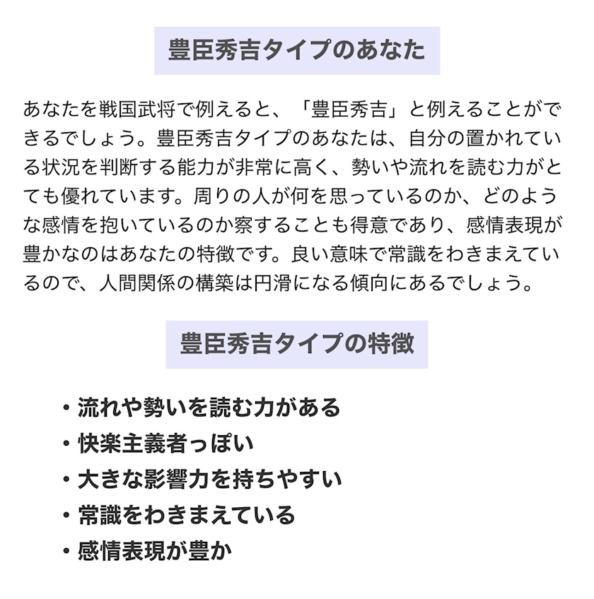 ちょこちょこ 戦国武将診断