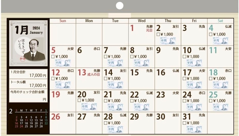 こーやって カレンダーに