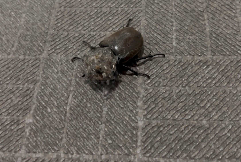 昨夜、お顔にゴミの塊がついてるカブトムシが建物内歩き回ってて、目見えるのかな?って気になってしまい、、、