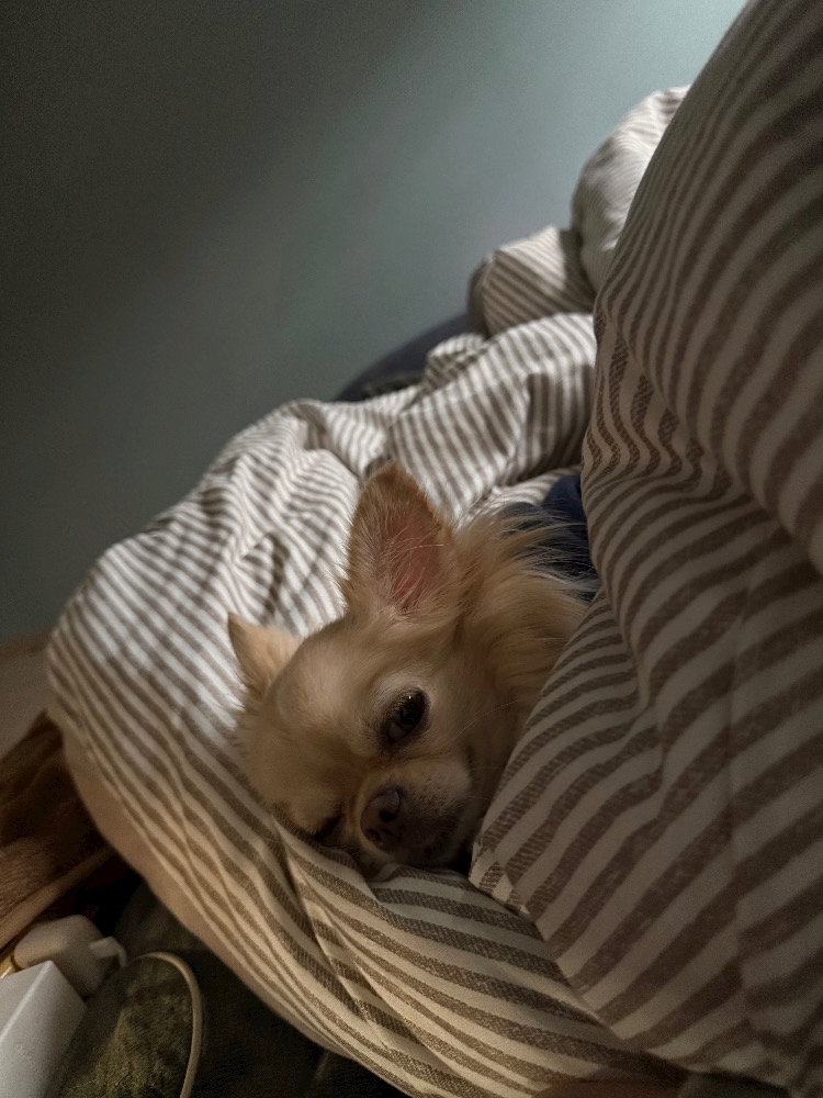 最近起きたら愛犬枕と布団上手く使って寝てる、、