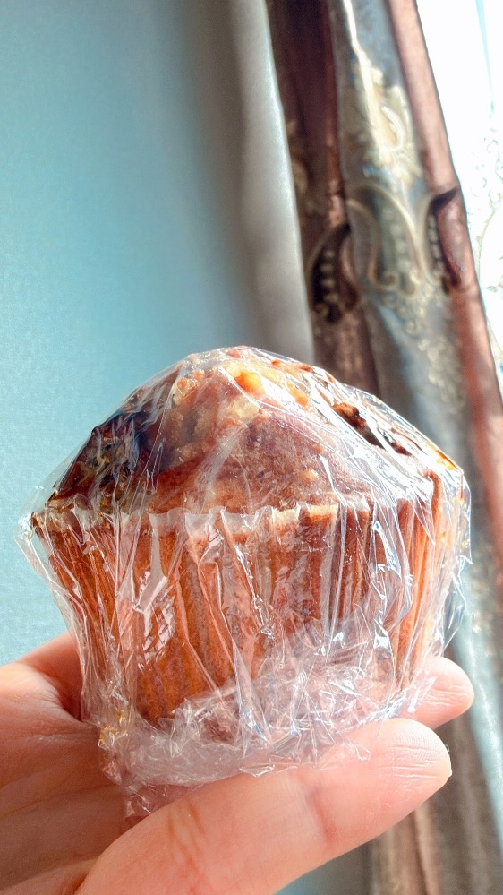カフェでゲットした米粉のマフィン🧡🌿💐
