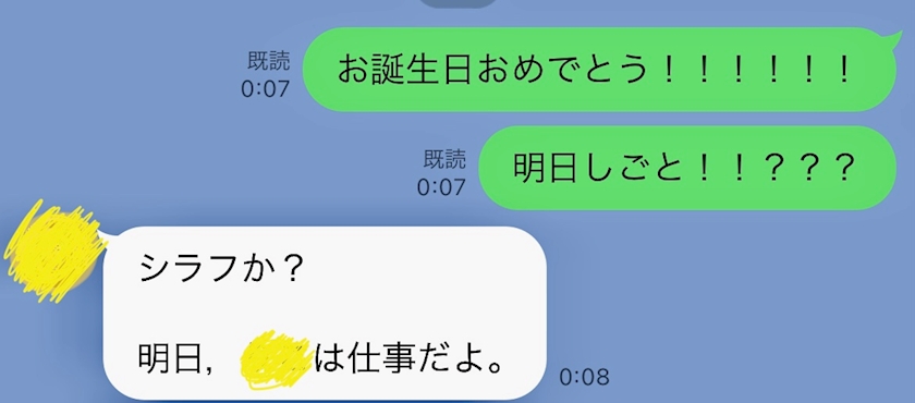 日付超えたから1番にLINEしたのに、第一声
