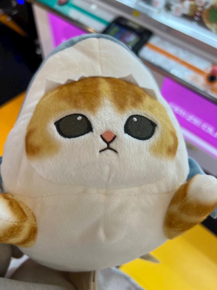 ゲーセンで500円でさめにゃん取れた😎